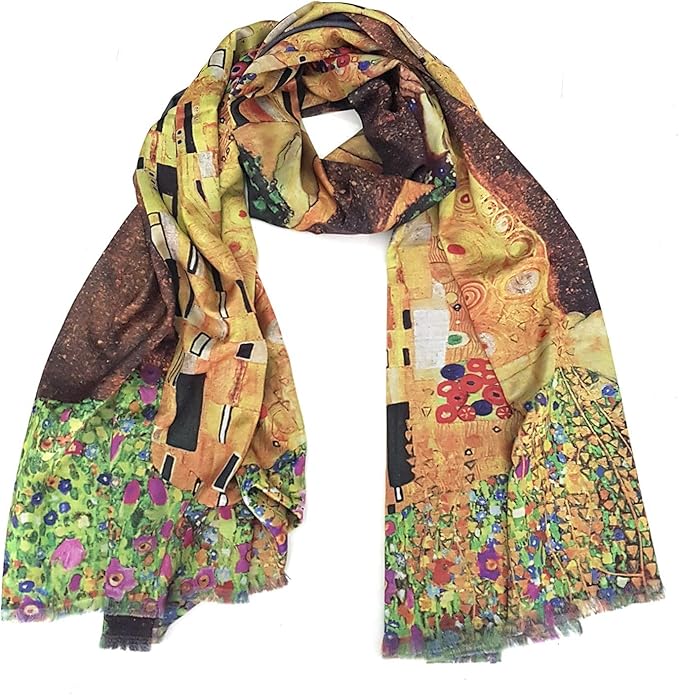 Cindystylist Foulard Sfrangiato Pashmina Donna Disegno Il Bacio Di Klimt Viscosa E Seta Dimensioni 190x75 Cm Amazon It Abbigliamento