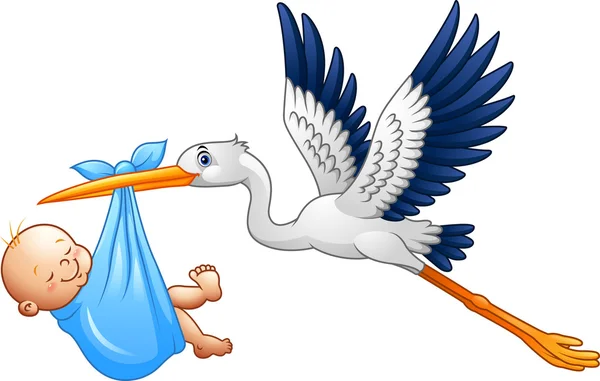 Uccello Di Volo Della Cicogna Del Fumetto Che Trasporta Un Neonato Vettore Premium