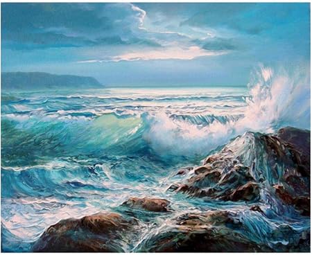 Hajksds Dipingere Con I Numeri Guarda Il Mare Astratto Paesaggio Marino Disegno Su Tela Dipinto Digitale