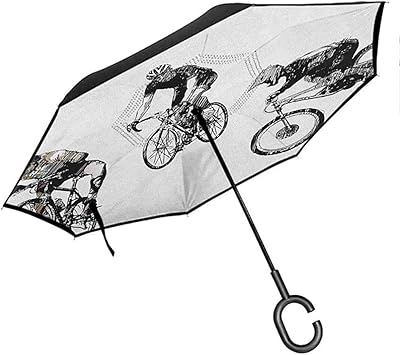 Mike Shop Ombrello Da Viaggio Impreciso Disegnato A Mano Di Ciclisti Biciclette Da Bicicletta Con Casco Tour De France A Tema In Bianco E Nero Amazon It Sport E Tempo Libero