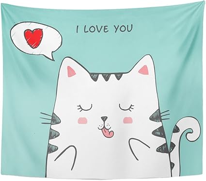 Arazzo Carino Con Disegno Di Gatto A Forma Di Cuore In Nuvola Disegnato A Mano Con
