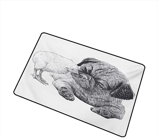 Tappetino Per Il Benvenuto Pug Immagine Di Pug E Piccolo Pulcino Disegnato A Mano Affetto Tra Gli Animali Il Tappetino Per Porta E Inodore E Resistente Grigio Scuro Tappetino Da Bagno Bianco