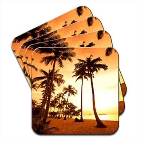 Palme Sulla Spiaggia Isola Deserta Giallo Tramonto Set Di 4 Sottobicchieri Amazon It Casa E Cucina