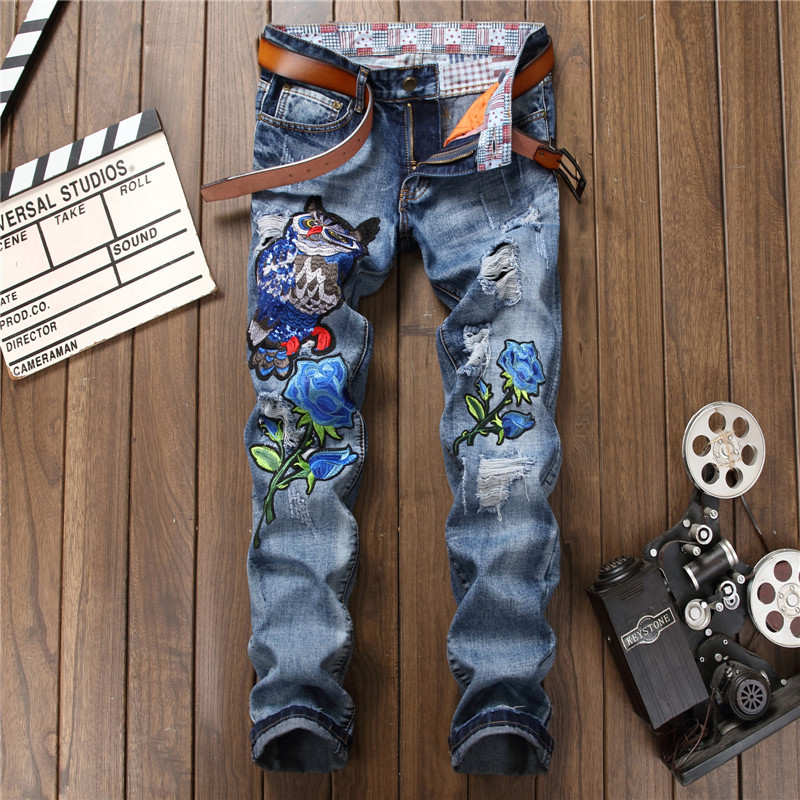 Uomo Tigre Ricamato Di Fiori Di Disegno Di Patch Denim Dritto Jeans Strappati 0795 Designer Ripped Jeans Ripped Designer Jeansripped Jeans Aliexpress