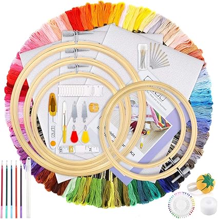 Amazon Com Caydo Hand Embroidery Kit With Instructions 100 Colors Threads 40 Sewing Pins 3 Pieces Aida Cloth Embroidery Hoops And Cross Stitch Tools For Adults And Kids Beginners