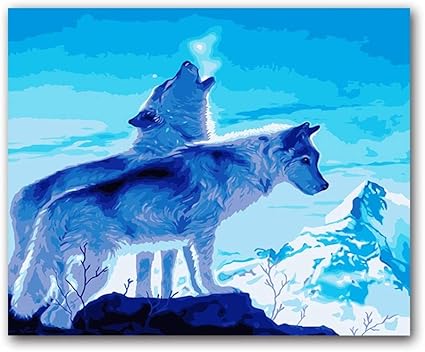 Paintyty Lupo Alla Notte Di Luna Piena Foto Fai Da Te Digitale Pittura Ad Olio Da Numeri Animali Con Kit Per Bambini Impara Canva Dipingere Colorazione Disegnare Amazon It Casa E Cucina