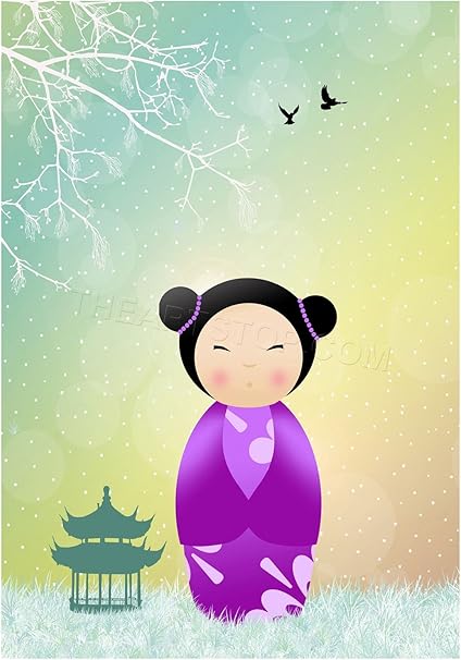 Wee Blue Coo Painting Drawing Cartoon Kokeshi Doll Snow Japan Wall Art Print Pittura Disegno Cartone Animato La Neve Giappone Parete Amazon It Casa E Cucina