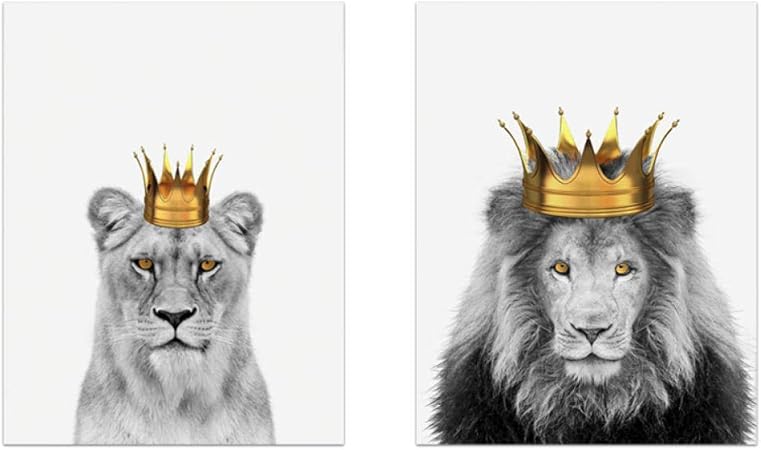 Cnhnwj Leone E Leonessa Foto Arte Parete Bianco E Nero Animale Tela Poster Re E Regina Stampa Minimalista Pittura Arredamento Camera Da Letto 40x60cmx2 Senza Cornice Amazon It Casa E Cucina