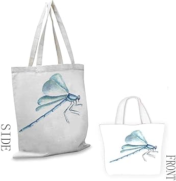 Borsa Per La Spesa Lavabile Con Libellula Ornamento Floreale Con Piante Di Felce Foglie Natura Eleganza Illustrazione Stilizzata Fatta A Mano Borsa Per La Spesa Nera E Bianca Tela Colore 10 W15 75