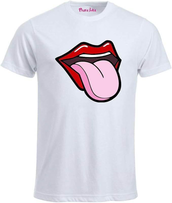 T Shirt Maglia Bianca Uomo Disegno Bocca Lingua Idea Regalo M Amazon It Abbigliamento