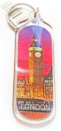 S01 Portachiavi Ovale In Acrilico Con Disegno Del Big Ben Di Londra Inghilterra Al Tramonto Da Collezione Amazon It Casa E Cucina