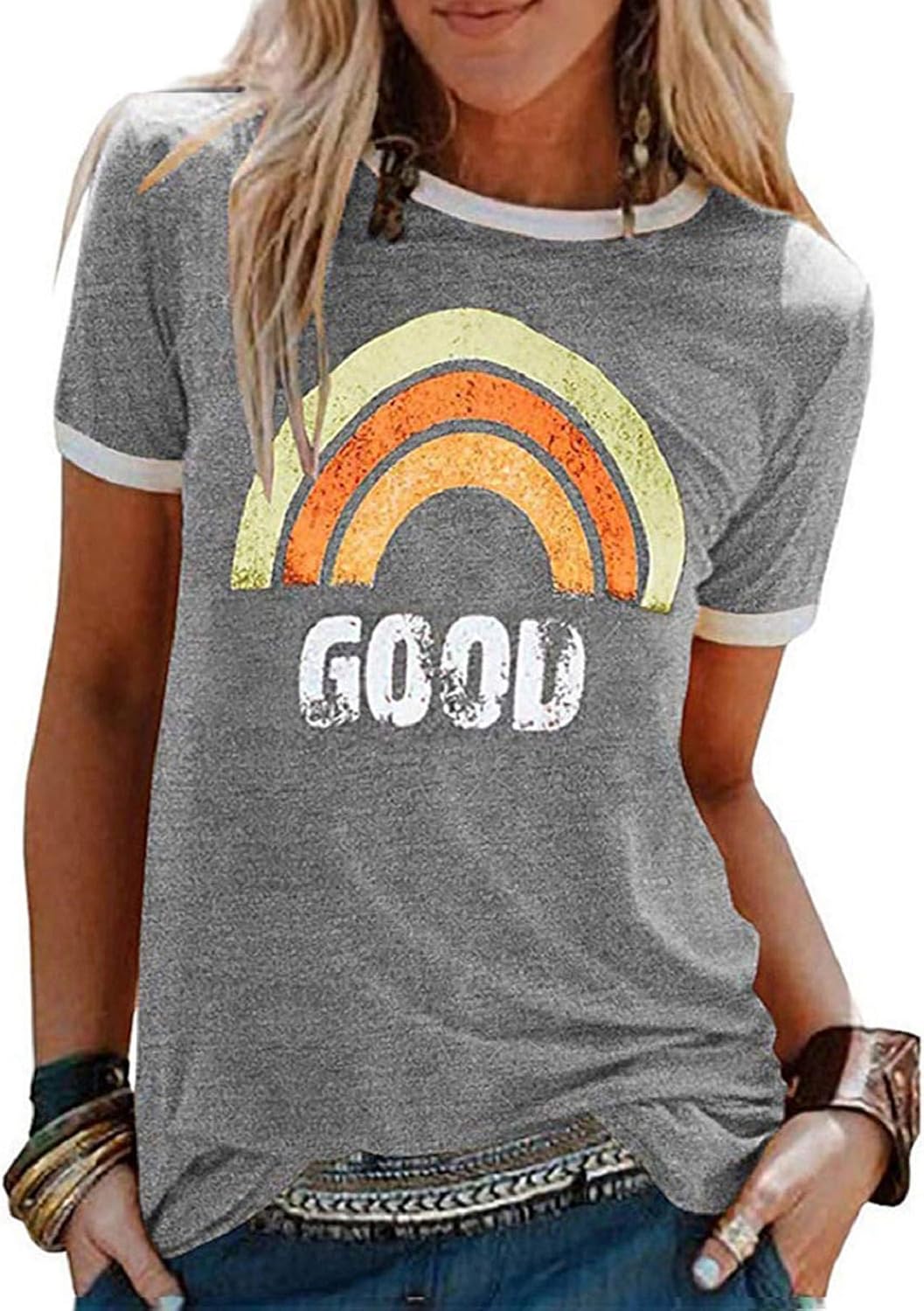 A Maniche Corte Aderente Maglietta Da Donna Estiva Con Stampa A Forma Di Lettera Arcobaleno Stile Casual Yuson T Shirt T Shirt Top E Bluse