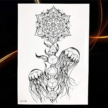 Lihaohao Black Geometric Jellyfish Adesivi Per Tatuaggi Temporanei Mandala Flower Tattoo Bracciale Planet Men Arm Fox Tatoo Supplies 3d 15x21cm Amazon It Giochi E Giocattoli