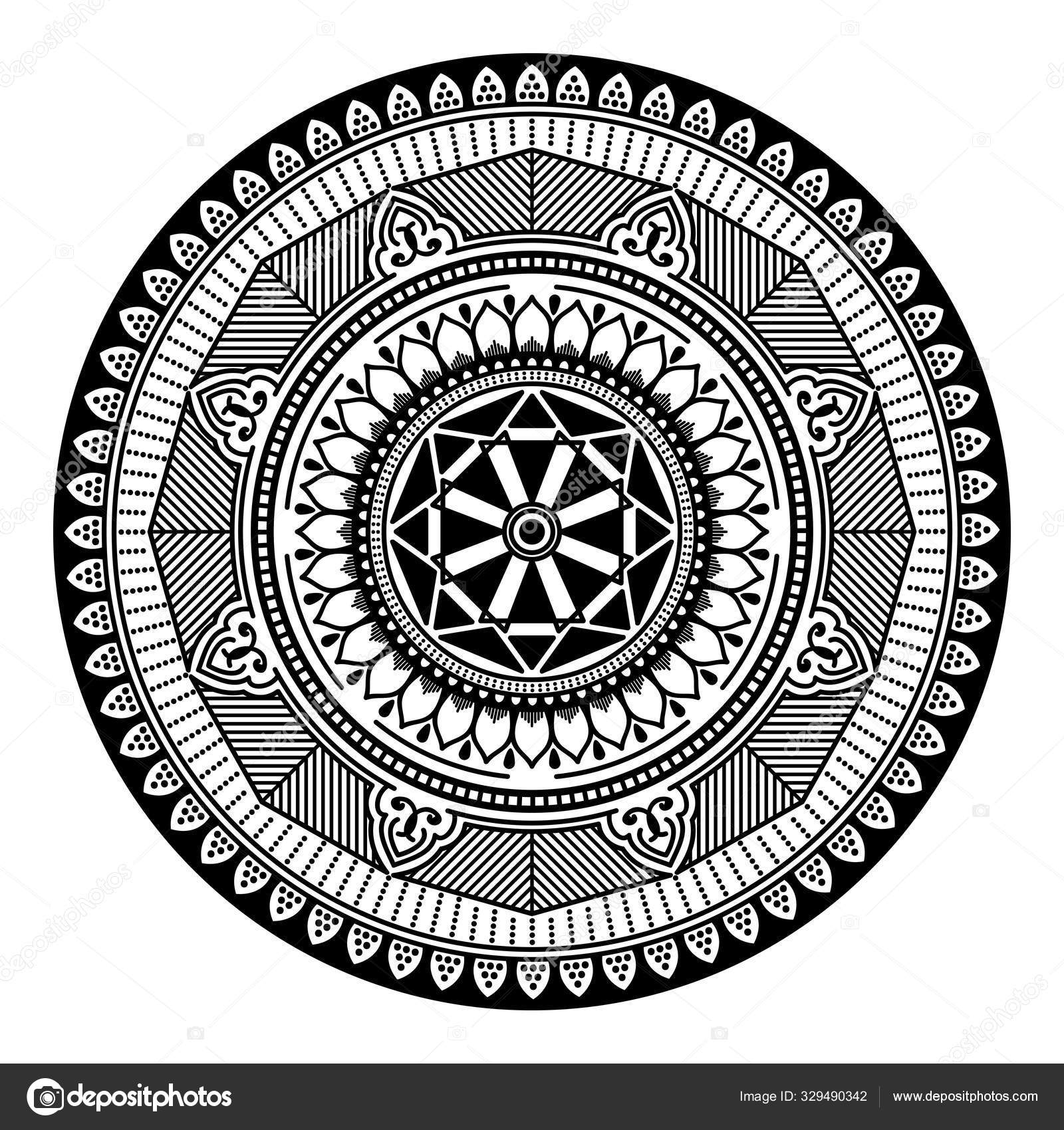 Signore Ganesha Sul Mandala Indiano Stile Modello Asiatico Con Foglie E Fiori Lo Stile Di Yoga Stampa Bianco E Nero Illustrazione Vettoriale Immagine E Vettoriale Alamy