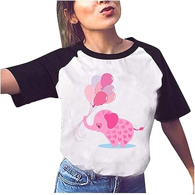 R Cors Moda Maglietta Donna T Shirt Stampa Elefantino Palloncino Bluse Donna Eleganti Camicetta A Maniche Corte Con Scollo A O A Manica Corta Amazon It Abbigliamento