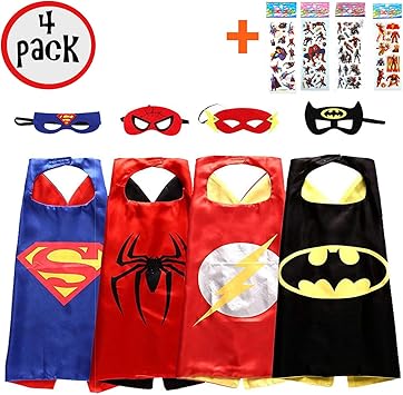Squishybean 4 Set Bambini Mantello E Maschera Flash Superman Spider Man Batman Costume Da Super Eroe Dress Up Flash Superman Spiderman Batman Avengers Flash Superman Spider Man Batman Fancy Dress Amazon It Prodotti Per