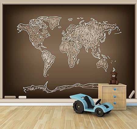Bilderdepot24 Carta Da Parati In Tnt Mappamondo Disegnato Seppia 300x230 Cm Pasta Incluso Direttamente Dal Produttore Amazon It Casa E Cucina