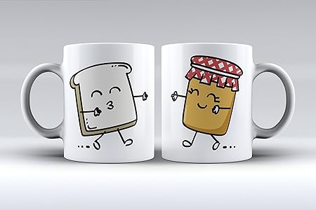 April Set Di 2 Tazze Con Disegno Animato Di Toast E Barattolo Di Marmellata Per Colazione Regalo Originale Per Coppia Amazon It Casa E Cucina