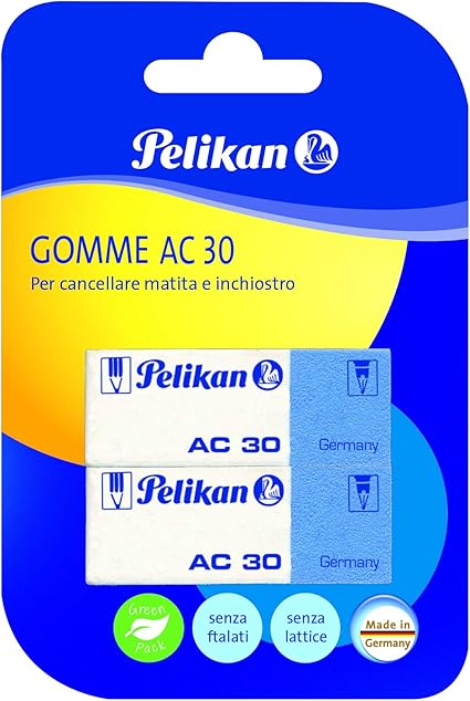 Pelikan 24005999 Gomma Ac 30 Bianca Blu Blister Da 2 Pezzi Adatta Per Disegno Tecnico E Scolastico Forma A Blocchetto Per Matita E Inchiostro Amazon It Cancelleria E Prodotti Per Ufficio