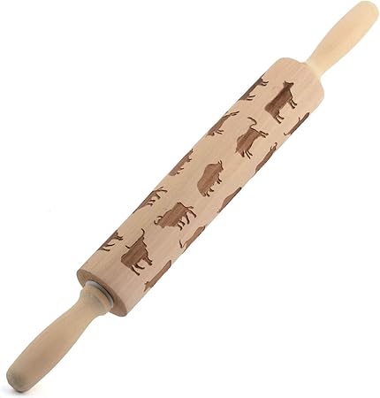 Oubori Mattarello In Legno Con Disegno A Rilievo Per Biscotti 43 2 Cm Legno A03 Cattle Amazon It Casa E Cucina