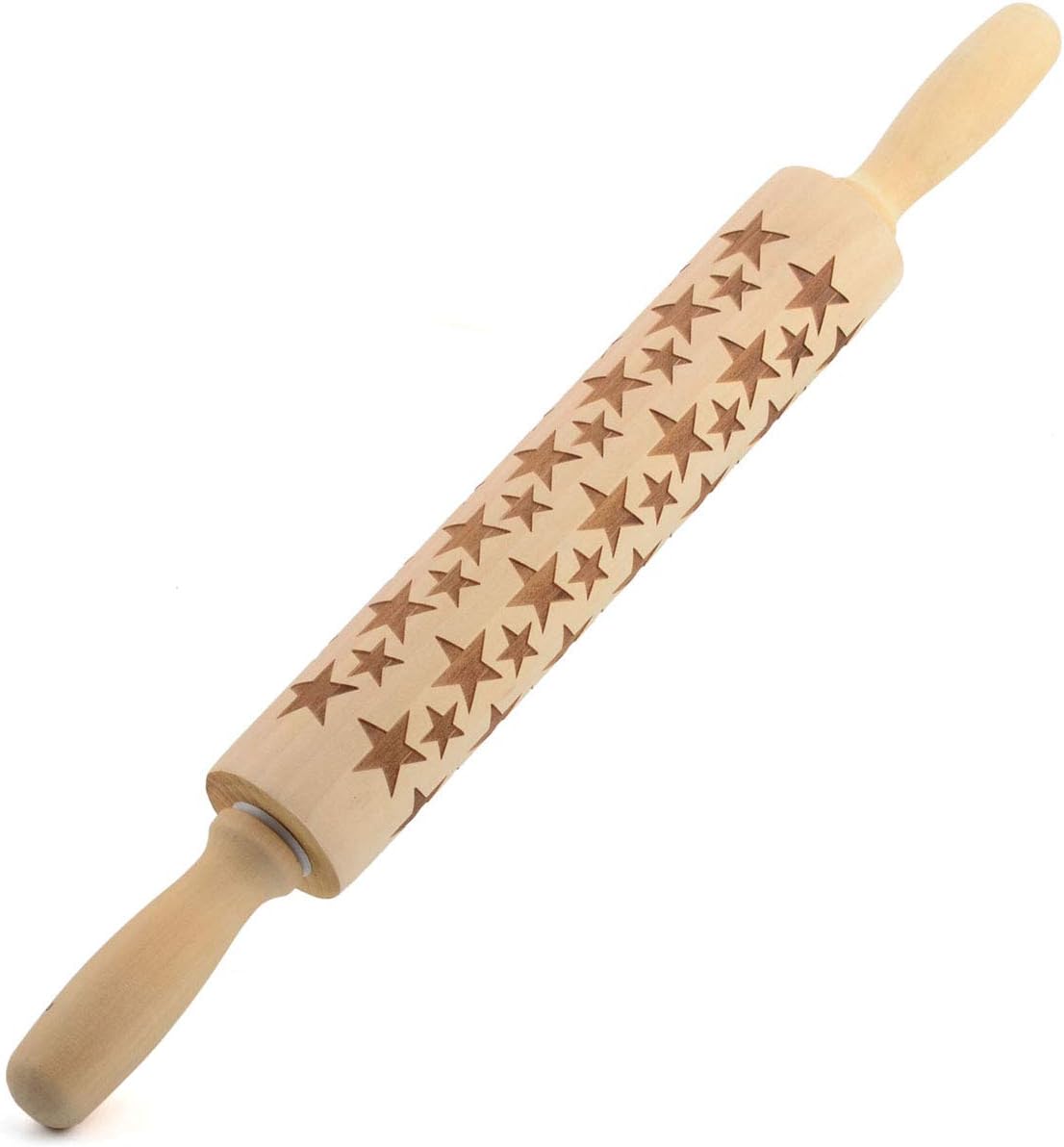 Oubori Mattarello In Legno Con Disegno A Rilievo Per Biscotti 43 2 Cm Legno A02 Star Amazon It Casa E Cucina