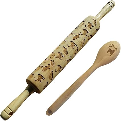 Cat Mattarello Inciso In Legno Con Disegno Di Gatto 25 4 Cm In Rilievo Cilindro In Legno Duro E Gatto Rolling Pin With Spatula Amazon It Casa E Cucina