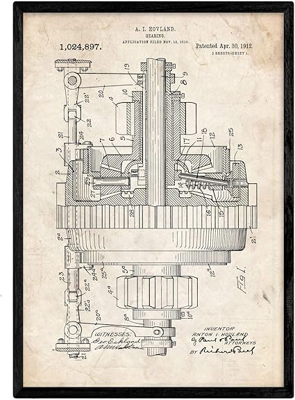 Nacnic Poster Arpa Brevetto Foglio Con Il Vecchio Brevetto Di Disegno In Formato A3 E Vintage Sfondo Arte Poster E Stampe