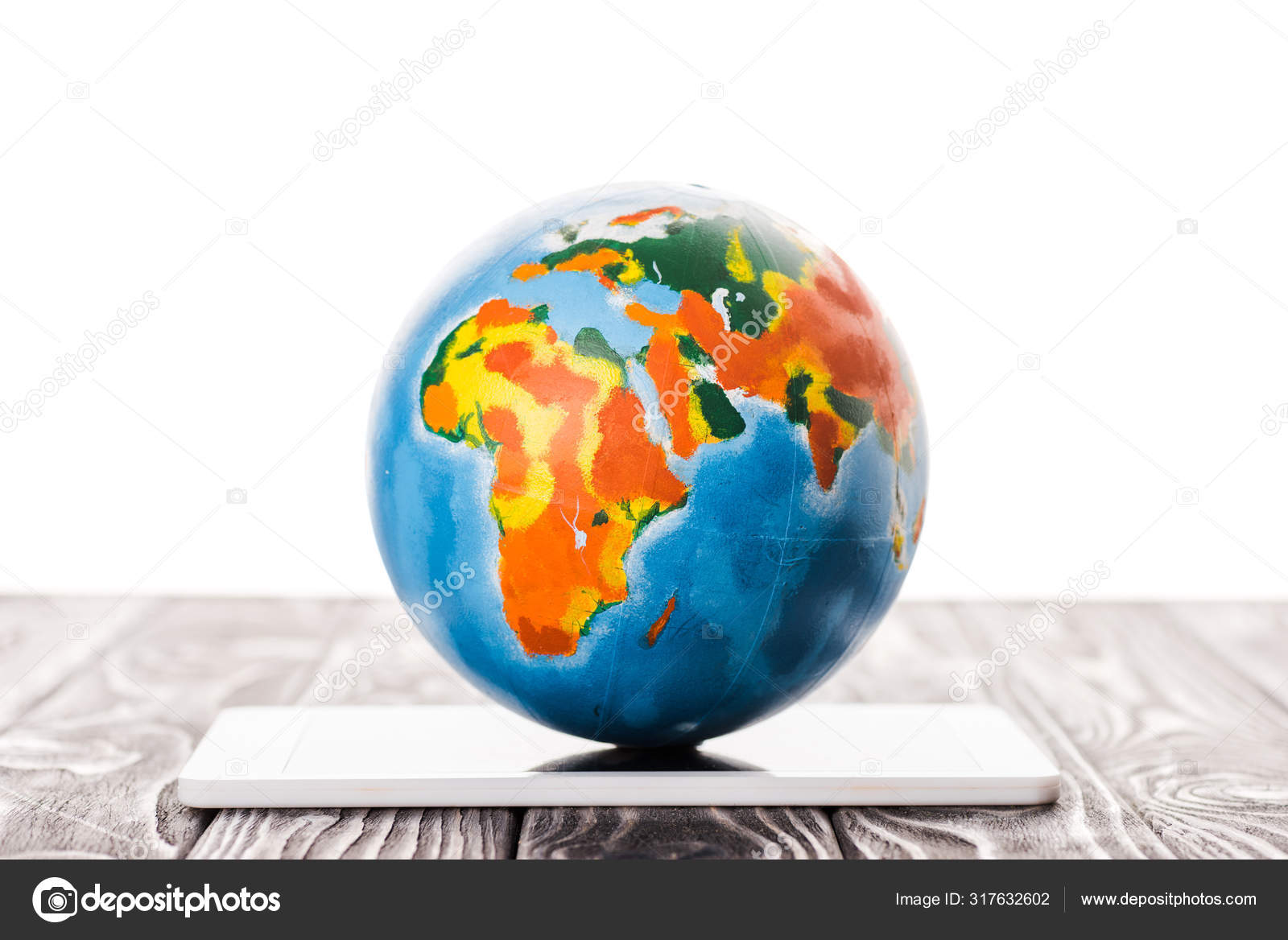 Globi Mondo Vettore Colorato Mappa Dettagliato Colorato Mondo Concentrato Isolato Mappa Tre America Globi Asia Canstock