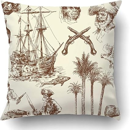 Wheyt Copricuscino Da Tiro Pirati Da Nave Collezione Disegnata A Mano Vintage Vecchia Bandiera Pistola Nautica Cappello Da Barca Poliestere 50 X 50 Cm Quadrato Cerniera Nascosta Federa Decorativa Amazon It Casa E