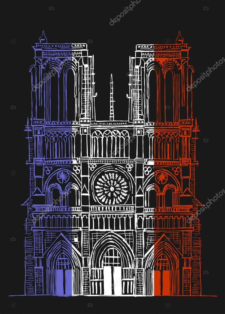 Vector Schematic Drawing Of The Notre Dame De Paris With The Royalty Free Cliparts Vectors And Stock Illustration Image 84909610