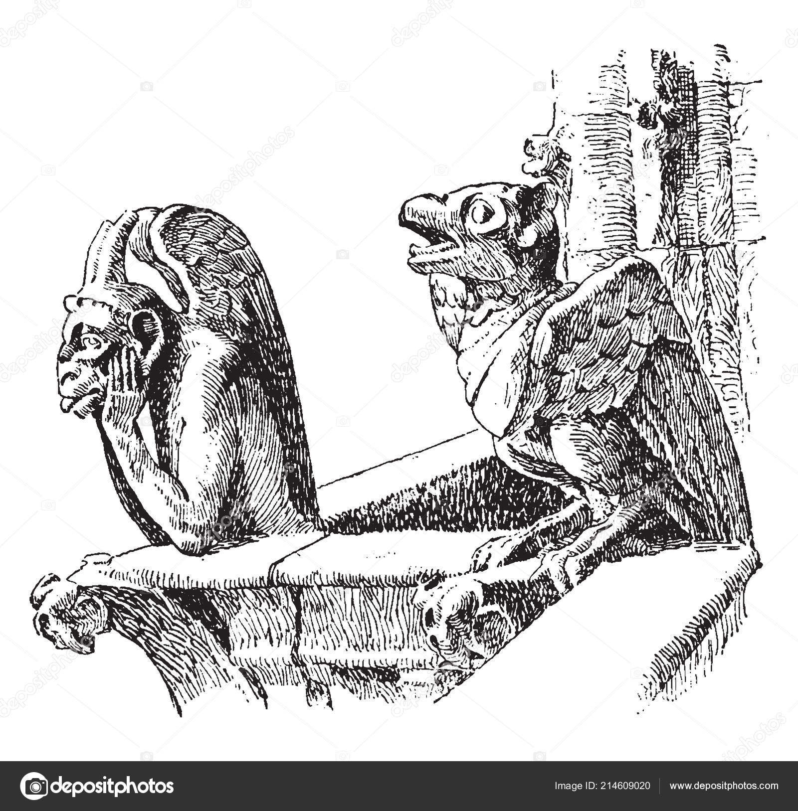 Gargoyles Notre Dame Paris France Carved Formed Grotesque Vintage Line Stock Vector C Morphart 214609020