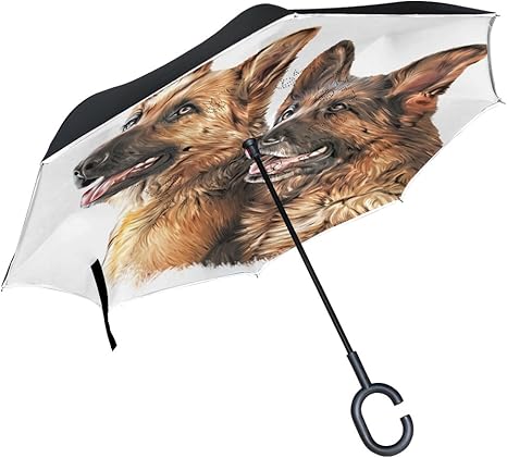 Coosun Disegno Cane Pastore Tedesco A Doppio Strato Invertito Ombrello Ombrello Di Retromarcia Per Auto E Uso Esterno Impermeabile Antivento Impermeabile Protezione Uv Grande Ombrello Dritto Con Manico A C Amazon It Sport