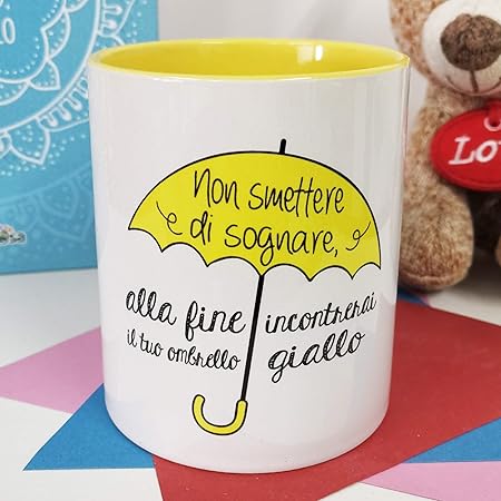 La Mente E Meravigliosa Tazza Con Frase E Disegno Divertente Non Smettere Di Sognare Alla Fine Incontrerai Il Tuo Ombrello Giallo Series How I Met Your Mother Amazon Co Uk Kitchen Home