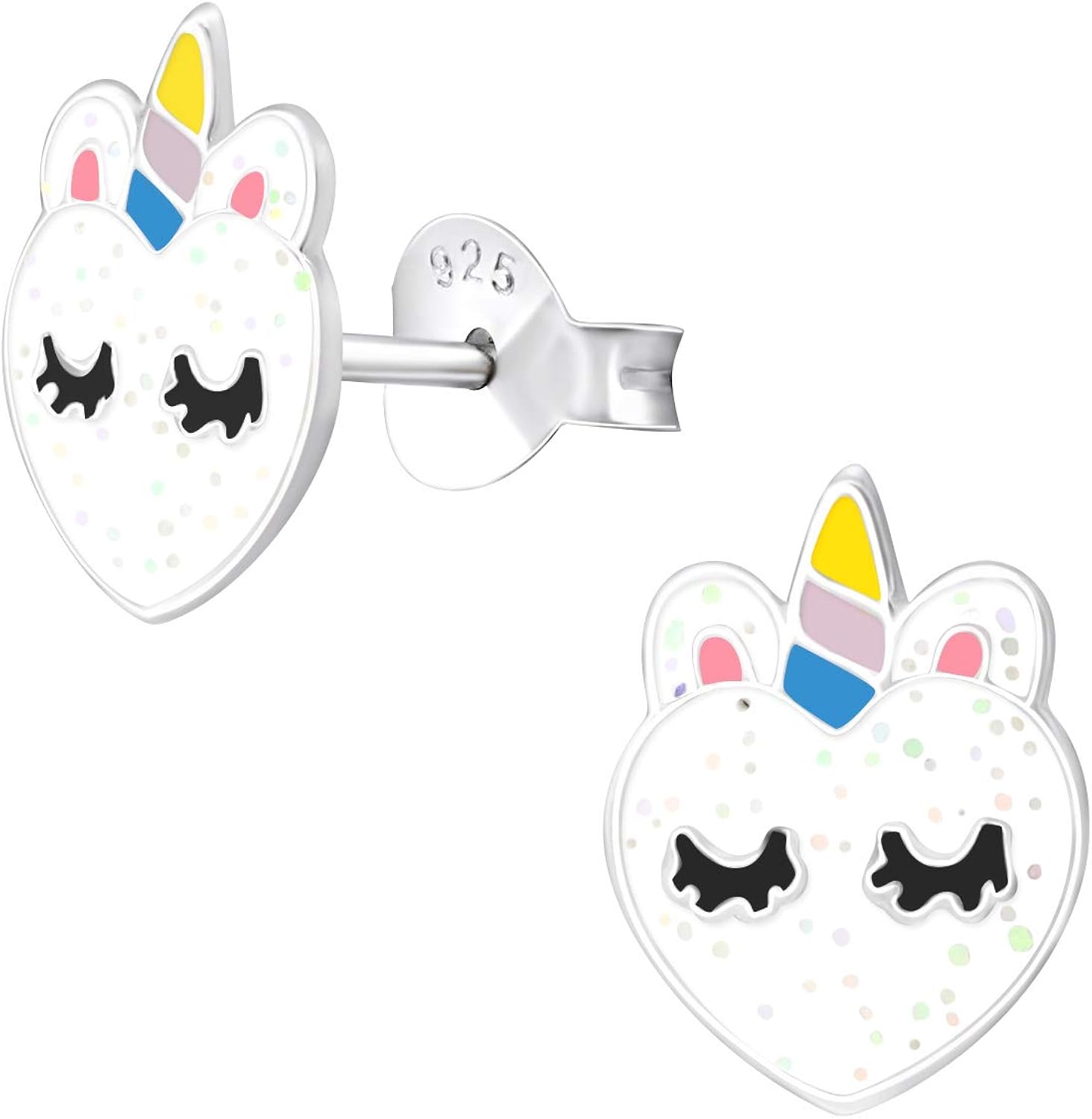 Gioielli Orecchini Corno Multicolore 10 Mm Occhio Di Biche Nero Bianco Glitterato Cuore Unicorno Tata Gisele C Orecchini Da Bambino In Argento Rodiato 925 1000 E Resina Epossidica Orecchie Rosa