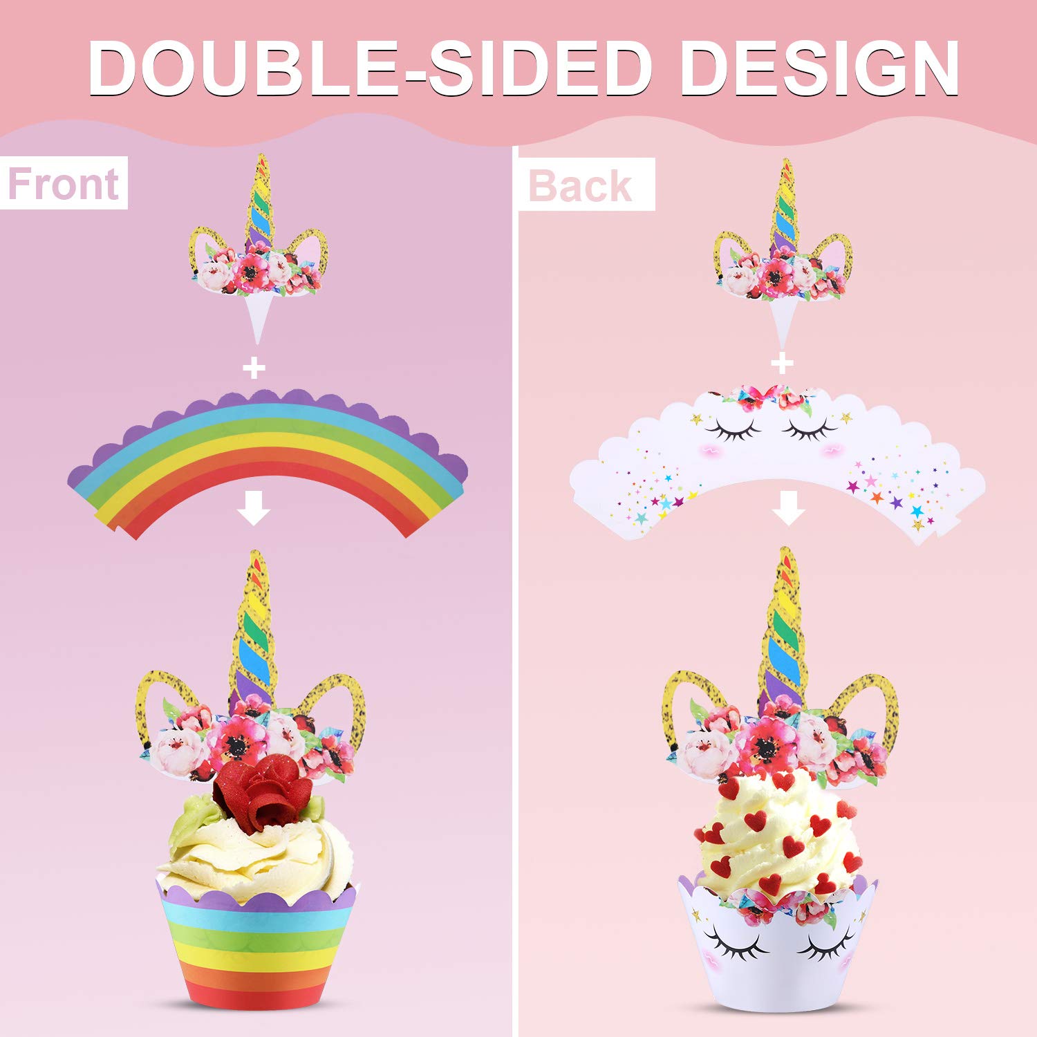 Includere 18 Pezzi Doppio Lati Cupcake Involucri Pirottini 36 Pezzi Cupcake Topper E Unicorno Corno Orecchie Con Ciglia E Cannucce Per Festa Di Compleanno Baby Shower Unicorno Torta Topper Set Decorazioni Torte