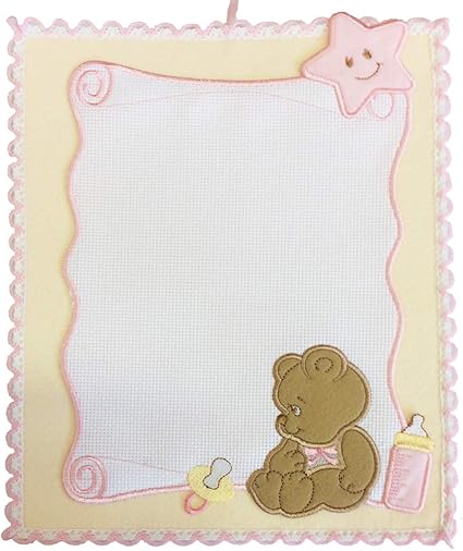 Coccarda Nascita Pergamena Orsetto Da Bimba Rosa Con Tela Aida Da Ricamare Amazon It Amazon It
