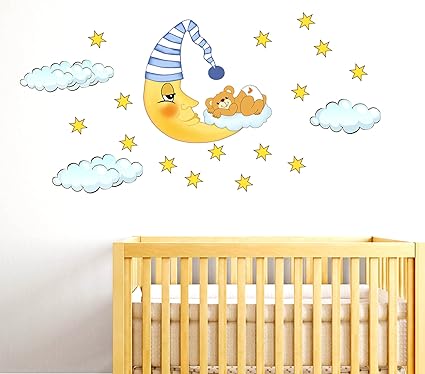 Stickerdesign Adesivi Murali Bambini Orsetto Che Dorme Su Luna Stelline Nuvolette Adesivo Per Cameretta Disegni Decorativi Wall Stickers Nursery Adesivi Murali Amazon It Casa E Cucina
