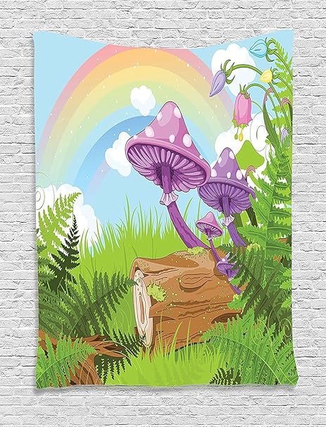 Morbidissima Coperta In Pile Fungo Paesaggio Fantastico Con Legno Legname Sull Erba E Foglie Arcobaleno Fungo Erbe Weed Artwork Multi Pile Multy 49 2 X 78 7 Inches Amazon It Casa E Cucina