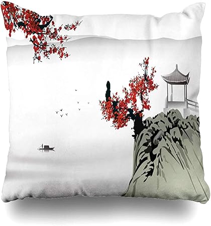 Wheyt Federa Per Cuscino Da 40 X 40 Cm Design Paesaggio Fiore Grafico Pennello Cinese Fiume Barca Pittura Giapponese Stile Di Disegno Cuscino Natura Amazon It Casa E Cucina