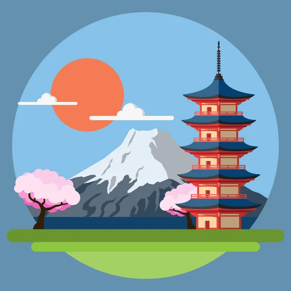 Paesaggio Monte Albero Sakura Fuji Pagoda Giappone Illustrazione Paesaggio Monte Albero Sakura Originale Fuji Canstock