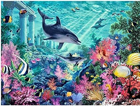 Weimeing Fai Da Te Pittura Ad Olio Per Numero Kit Pittura Paintworks Paesaggio Sottomarino Dolphin Wall Art Picture Disegno Con Spazzole 40x50cm Frameless Decorazioni Di Natale Decorazioni Regali Amazon It Casa E Cucina