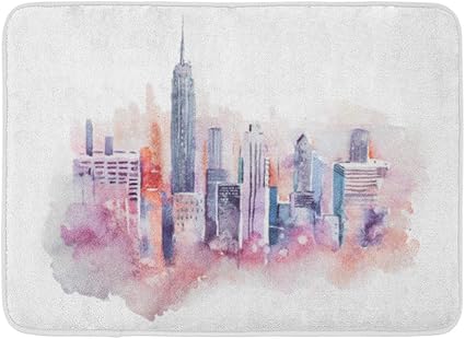 Lifipok Home Zerbini Tappeti Da Bagno Outdoor Indoor Zerbino York Disegno Ad Acquerello Paesaggio Urbano Grande Citta Downtown Aquarelle Pittura Nyc Vernice Bagno Decor Tappeto Tappetino Da Bagno Amazon It Casa E Cucina