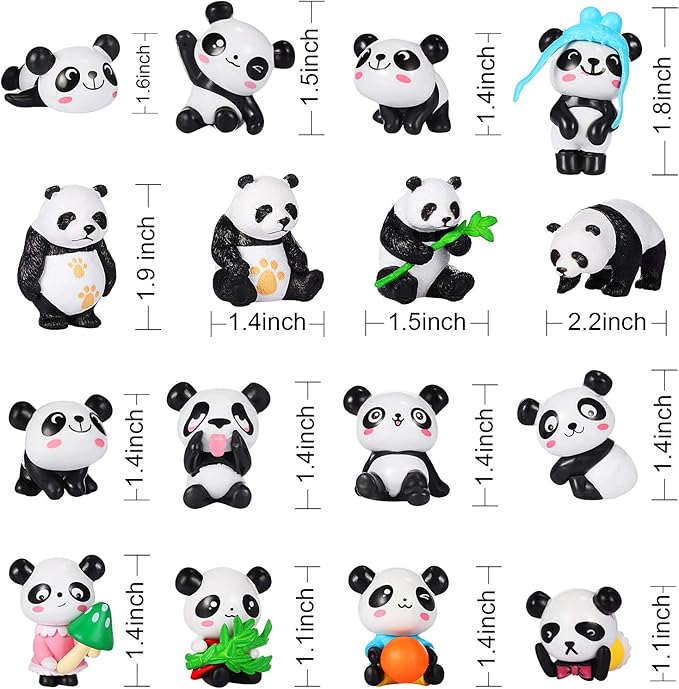16 Pezzi Carino Panda Animale Mini Figurine Playset Mini Panda Torta Topper Panda Decorazione Craft Per Bambini Festa Favori Divertimento Ufficio Casa Decorazione Utensili Decorativi Topper Per Torte