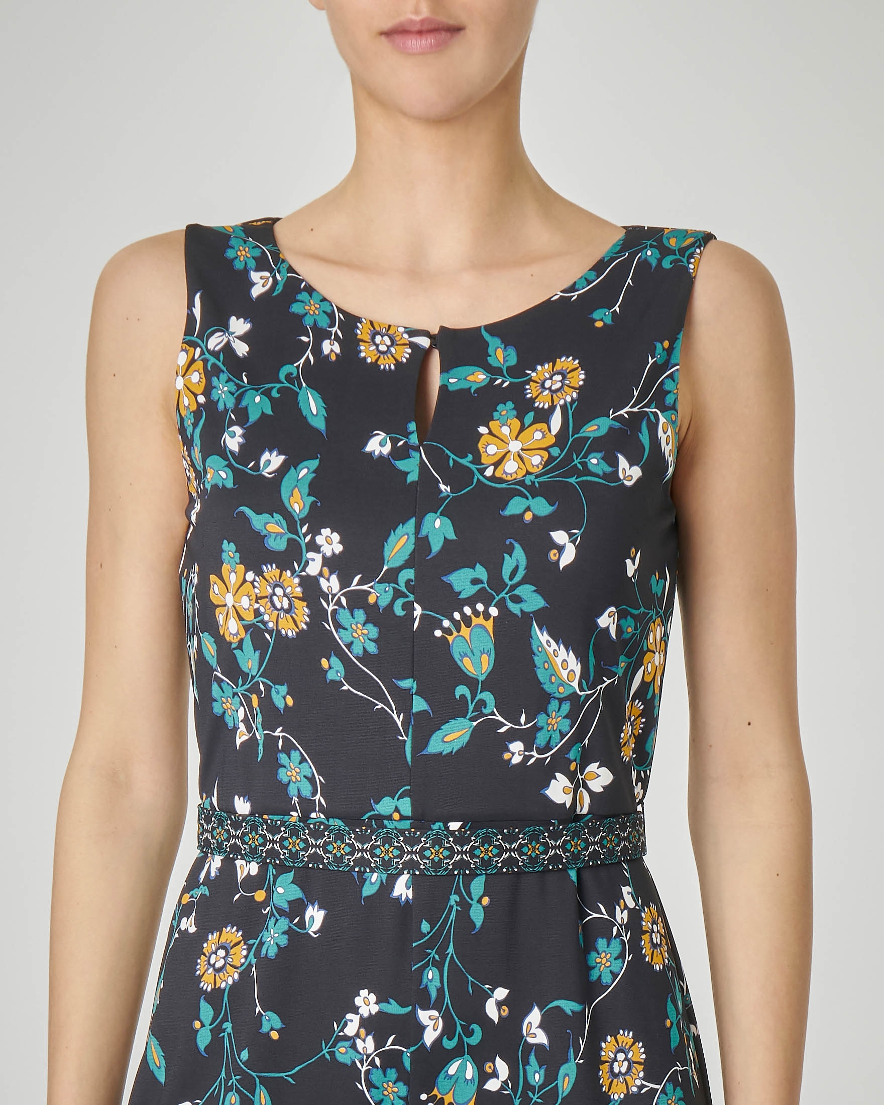 Tuta In Viscosa Senza Maniche E Pantaloni Ampi Con Disegni Floreali Gialli E Smeraldo Pellizzari E Commerce