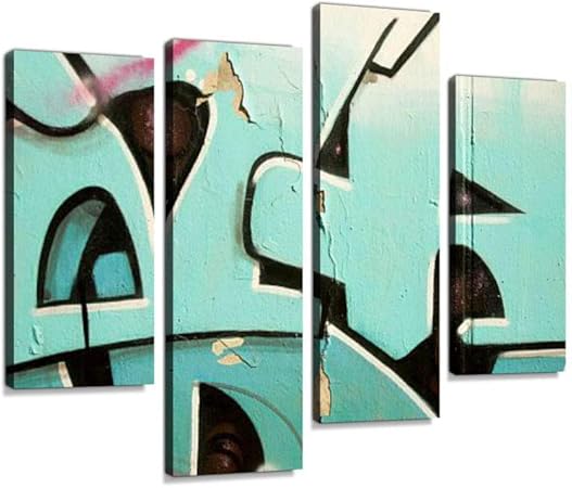 Lis Home Graffiti Tela Arte Da Parete Quadri Appendibili Opera Arte Moderne Immagine Astratta Stampe Decorazione Della Casa Disegnata Con 4 Pannelli Amazon It Casa E Cucina