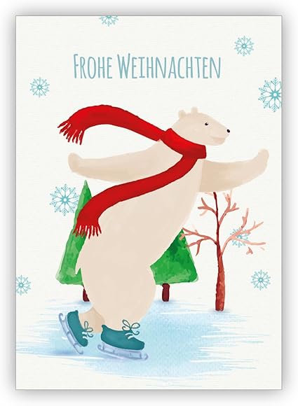 Painted Cartolina Di Natale Con Pattini Da Ghiaccio Laufendem Orso Polare Buon Natale 16 Weihnachtskarten Amazon It Cancelleria E Prodotti Per Ufficio
