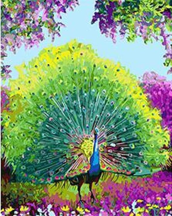Bvwsbgf Diy Acrilici Dipinto Ad Olio Pavone Dipingere Con I Numeri Kit Su Tela Per Adulti Bambini Principianti Per Il Soggiorno Decorazione 40x50 Cm Amazon It Casa E Cucina