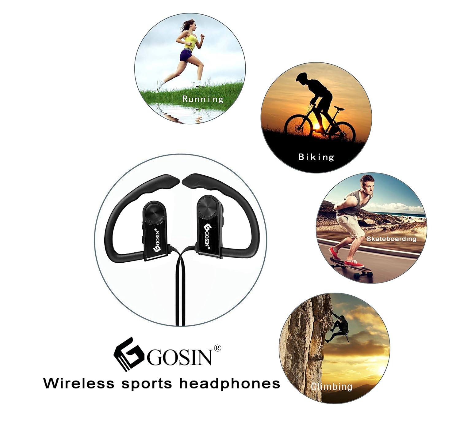 Cancellazione Del Rumore Gosin Bluetooth Auricolari In Ear Sport 4 1 Senza Fili Con Microfono Con Auricolari Stereo Nero