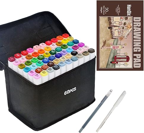 Set Di Pennarelli A Doppia Punta Per Disegno Animazione Per Artisti Manga Grafici Confezione Da 60 Colori Con Blocco Di Carta In Formato A5 Amazon It Casa E Cucina
