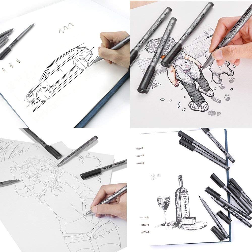 Illustrazione Artistica Scrittura A Pennello Disegno Tecnico Diverse Misure Pennarello Per Schizzi Set Di 9 Penne A Pigmenti Neri Micro Punte Per Schizzi Foonee Documenti Per Ufficio Cancelleria E Prodotti Per Ufficio